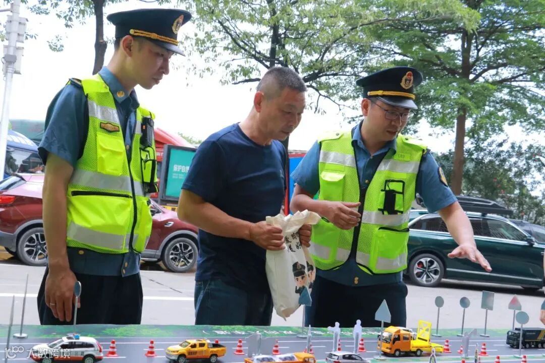 路政员走访沿线施工项目,通过观看涉路施工短视频、解读典型案例等方式,进一步增强施工人员的道路安全意识,并送上装有交通安全法律法规宣传资料、安全钥匙扣、应急急救用品的“安全普法礼包”。