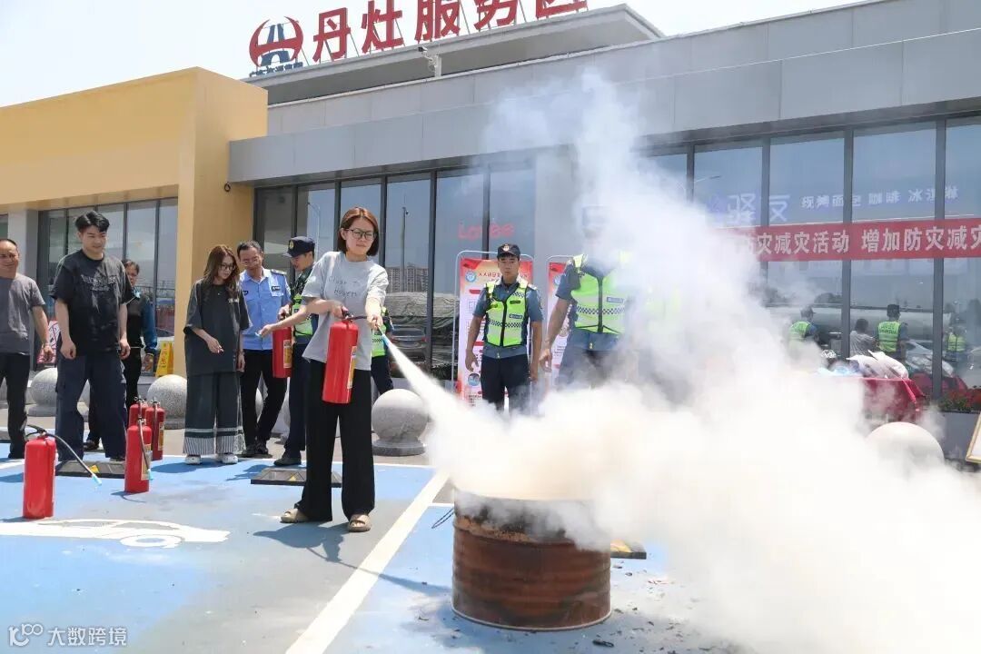 南环段高速在海鸥岛便民服务点、丹灶服务区设置消防应急体验区,路政员手把手为司乘传授灭火器“一提二拔三握四压”操作要领,并演示灭火毯、防毒面具的正确使用场景。