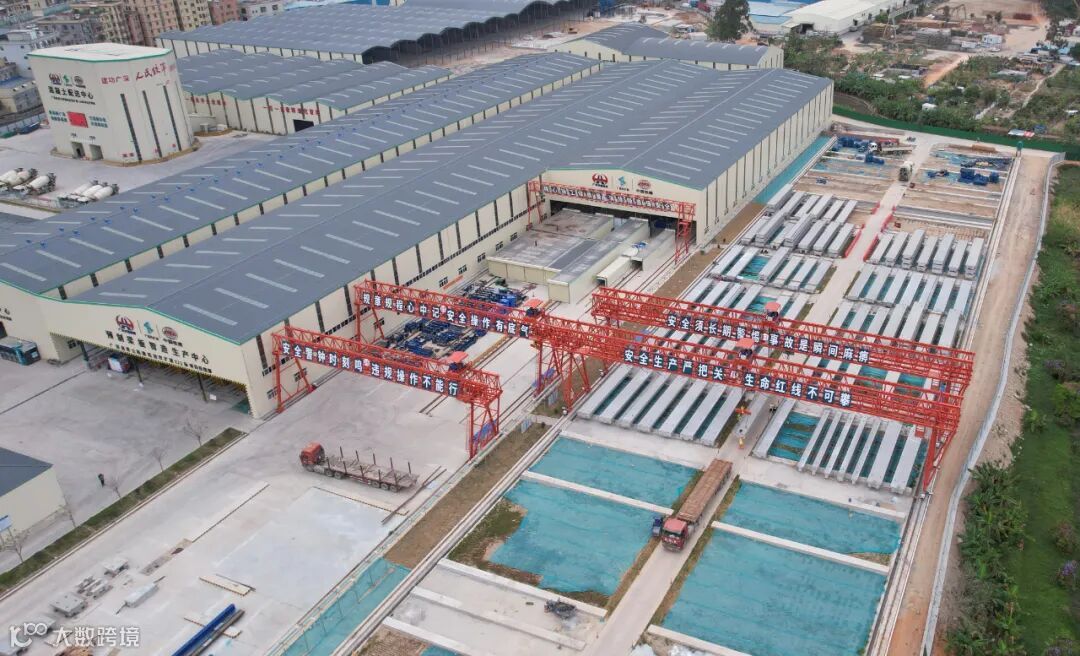 相较后张法梁板,先张法预制梁无需锚垫板、锚具、夹片、波纹管等预应力材料,通过钢绞线与混凝土的握裹力,形成预应力体系,张拉到位即可浇筑混凝土。且先张法施工工序更少,无需后张法压浆、封锚两个工序,根据场地布置,设置长线法台座,可实现“一线多片”,大大提升生产效率。这也是先张法双T梁在广东省内首次大规模应用。
