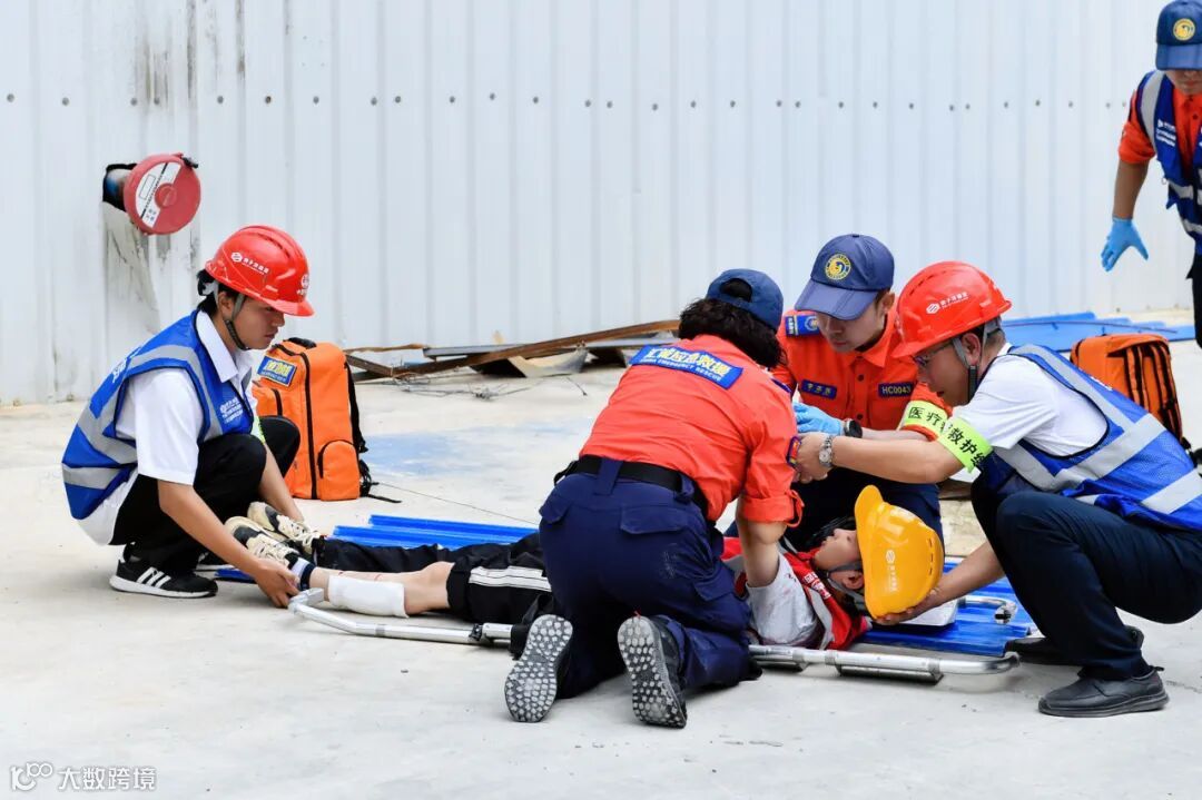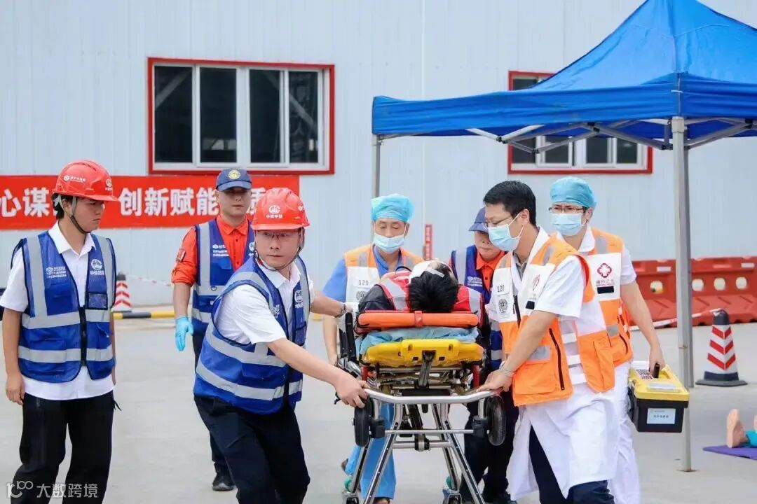 应急抢险队运用沙袋及L形防水板布置挡水墙