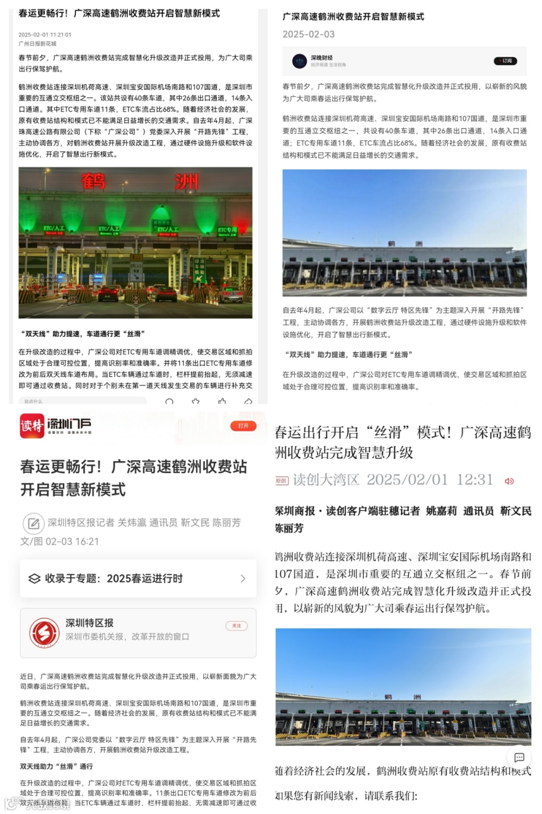 春节前夕,广深高速鹤洲站完成智慧化升级改造并正式投用,以崭新的面貌为广大司乘出行保驾护航。