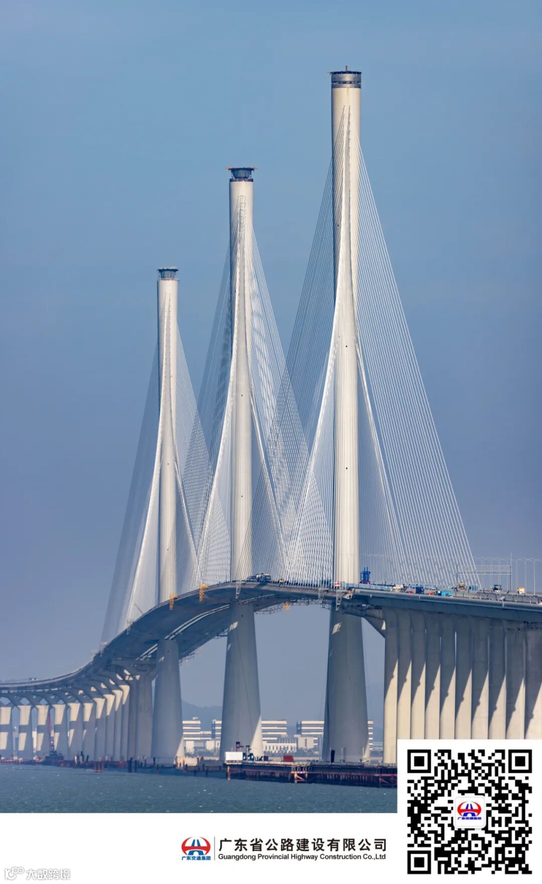 黄茅海跨海通道是港珠澳大桥的西延,起于珠海市平沙镇,向西跨越黄茅海水域,终于台山市斗山镇;全长约31公里,跨海段长度约14公里,双向六车道,设置高栏港大桥(主跨700米双塔单跨)、目前世界上跨径最大的三塔斜拉公路桥——黄茅海大桥(2×720米三塔双跨斜拉桥)2座主桥,隧道2座,互通4座,服务区1处。项目于2020年6月6日开工建设,2022年8月狮山隧道贯通,2023年4月5座主塔全部封顶、8月象山隧道贯通,2024年高栏港大桥、黄茅海大桥先后合龙,11月25日通过交工验收。黄茅海跨海通道作为国家重大工程,由广东交通集团建设管理,中交路建、中铁大桥局、保利长大、中铁十一局、中铁十二局、中铁十四局、中交二公局等30多家单位共同参与,建设期间累计有近万名建设者投入到这一重大跨海工程建设当中。