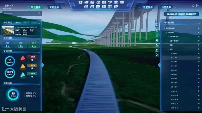 在养护决策体系构建上,项目精心打造广东高速公路科学养护决策三级管控流程体系,科学融合决策分析数据、年度工程进展和年度财务预算要求,精准规范养护工程项目库颗粒度。同时,依托人工智能和大数据分析,建立信息采集及分析决策模型,精准预测道路病害程度和劣化趋势,让养护工作更具前瞻性与精准性。