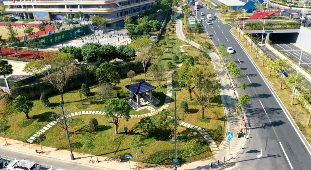 “学校旁边的闲置地建成了一个漂亮的口袋公园,平时接送小孩放学的家长也能在此休息等候、聊聊家常,真是太好了!”公园附近的广东外语外贸大学新塘实验小学副校长吴琪说道。