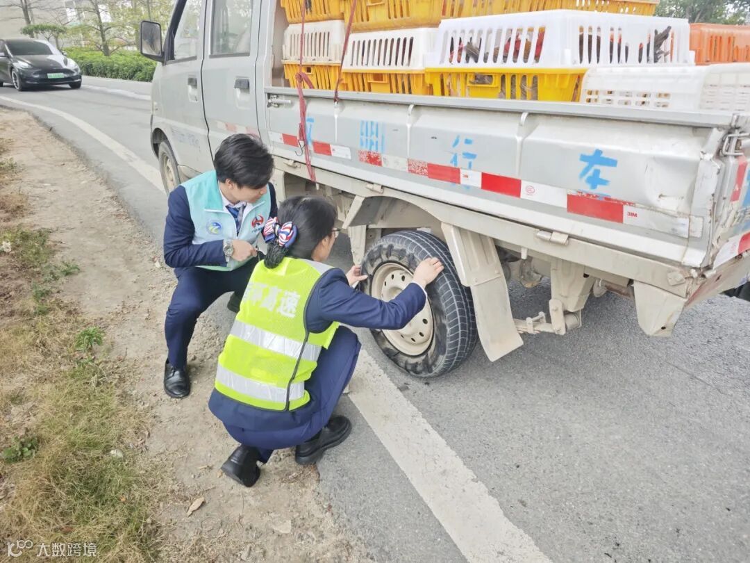 走近询问后得知,货车爆胎了。车主唐先生告诉黄莉梅,他正忙着将自家养殖的鸡送往东莞销售,行驶至南沙大桥时车辆突然爆胎。无奈之下,他只能缓慢驾车下桥。由于车上缺少换胎工具,货主催货电话又接连不断,唐先生十分焦急。