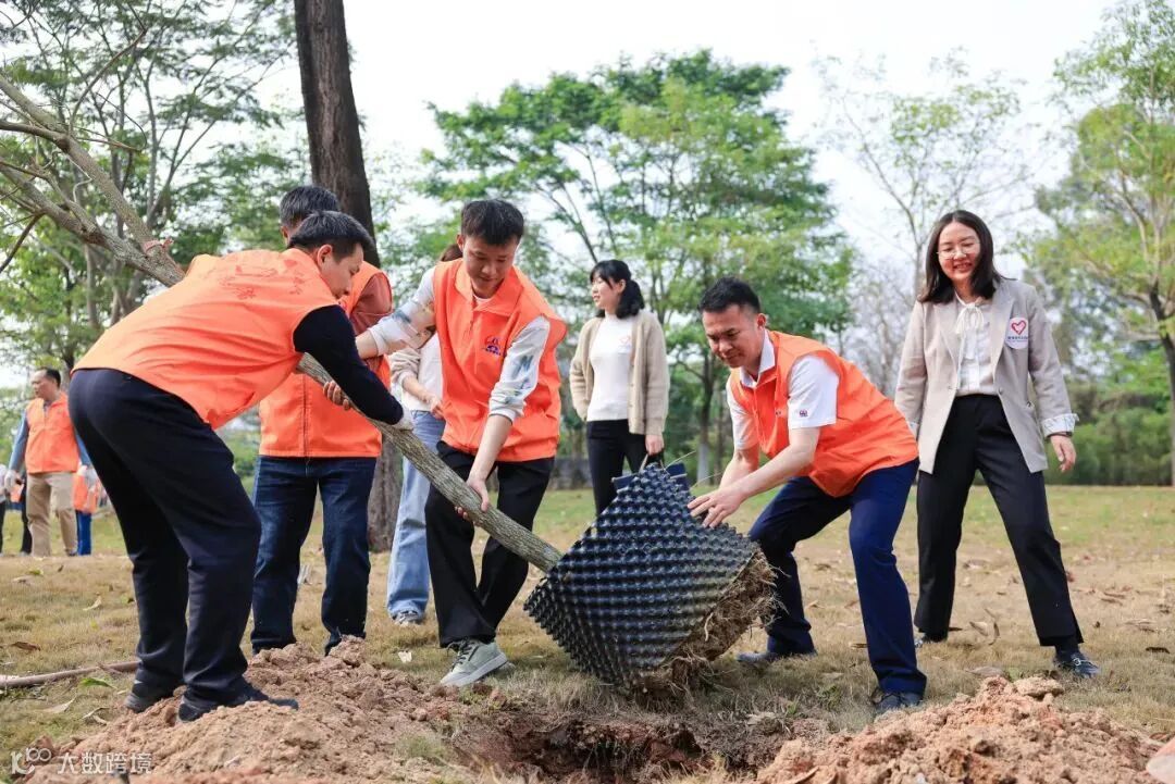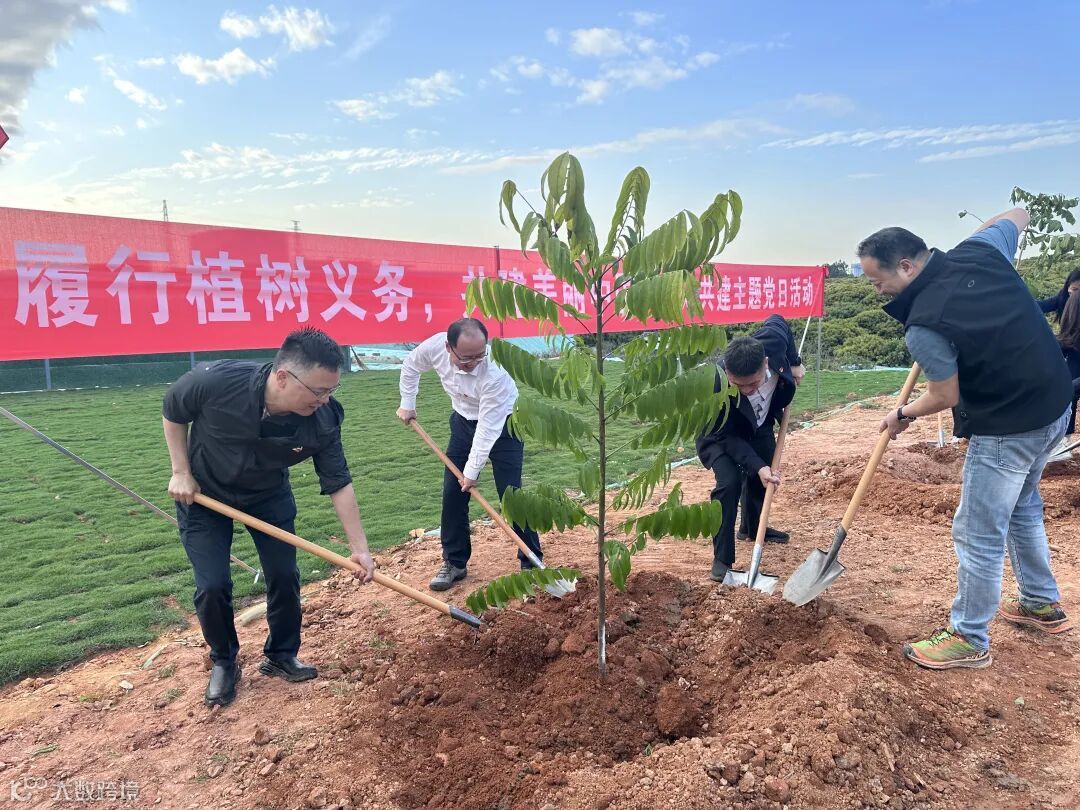 广珠西线公司党总支联合深湾基建党支部在中山南生活区组织开展“植此青绿,共树未来”植树活动,近50名志愿者热情满满、分工合作,齐心协力地挥动铁锹铲土、扶正幼苗、填埋树坑、提水灌溉,共同种下荔枝、龙眼树苗40株。