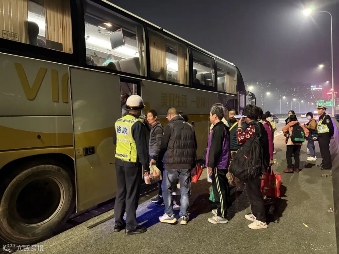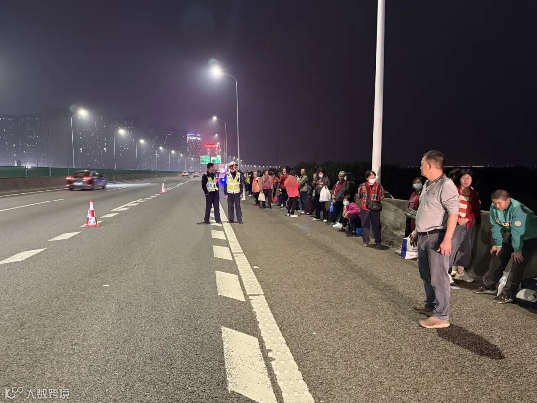 路政员李峰、李胜接报后火速赶赴现场,用反光锥在5分钟内筑起160米双车道隔离区,为司乘撑起“安全防线”,并指挥其他车辆有序通过。经了解,大巴车上共有47名司乘,司机已自行通知公司转运车从广州赶来。