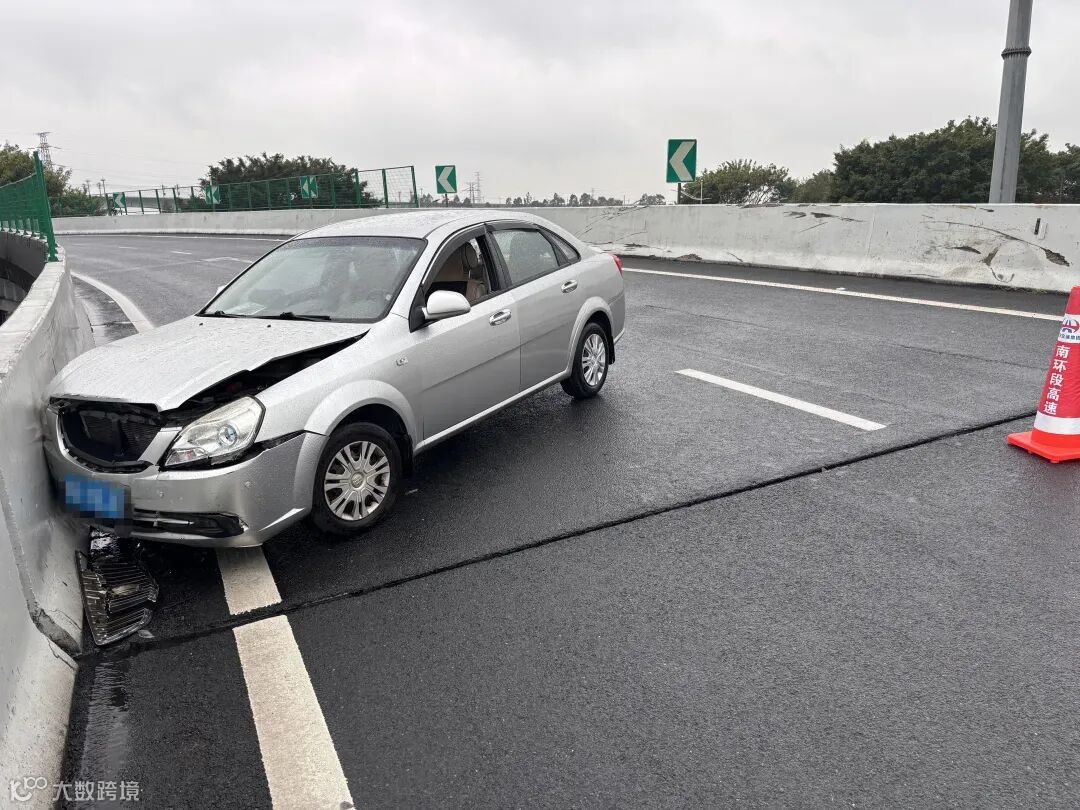 3月7日上午9点左右,一辆小车在南沙大桥西行下鱼窝头匝道处突然失控撞上了护栏。司机女士惊魂未定将车停靠在路肩,拖着受伤的手腕,踉跄着向收费站方向走去,寻求帮助。