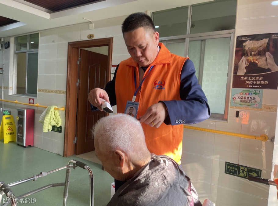 “马上新年了,给您送‘福’、做‘造型’。”在现场,书法特长志愿者挥毫送福,剪发特长志愿者为老人认真细致地修剪头发,现场其乐融融,一片欢声笑语。