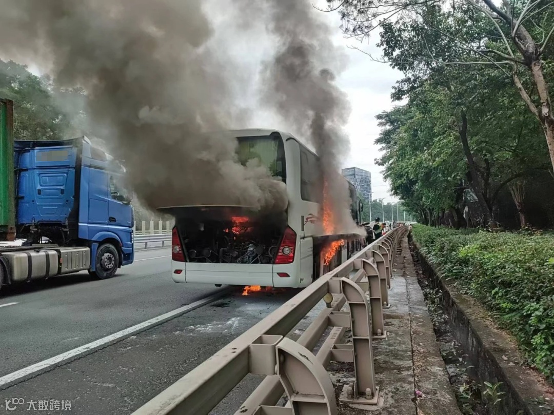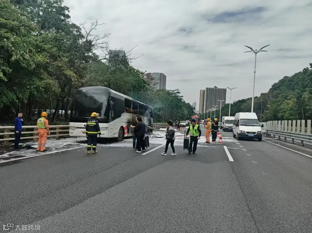 “深圳方向有一辆客车冒出浓烟,正准备停靠路肩!”“快通知交警、消防、拯救、路政到场……”