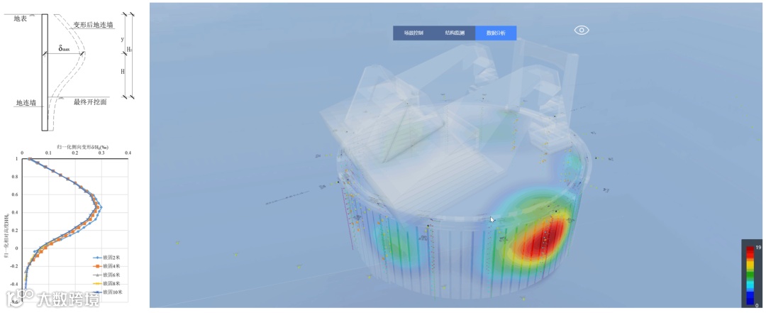 该技术还能对锚碇基坑变化进行准确预测,通过对锚碇结构性态的演化预测,“虚拟锚碇”精准模拟了锚碇基础未来三天的结构变化情况,模拟数值与实际监测数值相互验证,偏差精度在1毫米以内,准确模拟了开挖过程中由浅及深的演化特征。