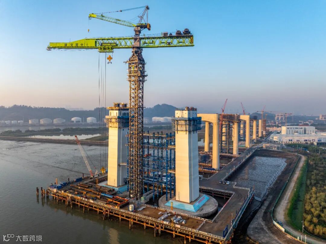 狮子洋大桥为跨径2180米的双层钢桁梁悬索桥,索塔为钢板混凝土组合索塔,塔高342米,钢壳内填充C80专用混凝土。针对组合桥塔钢壳吊装风险大,C80混凝土温控要求严、黏度大等难题,项目团队深入研究,将信息化、智能化手段与工艺相结合,形成超高钢板混凝土组合桥塔智能建造成套技术。