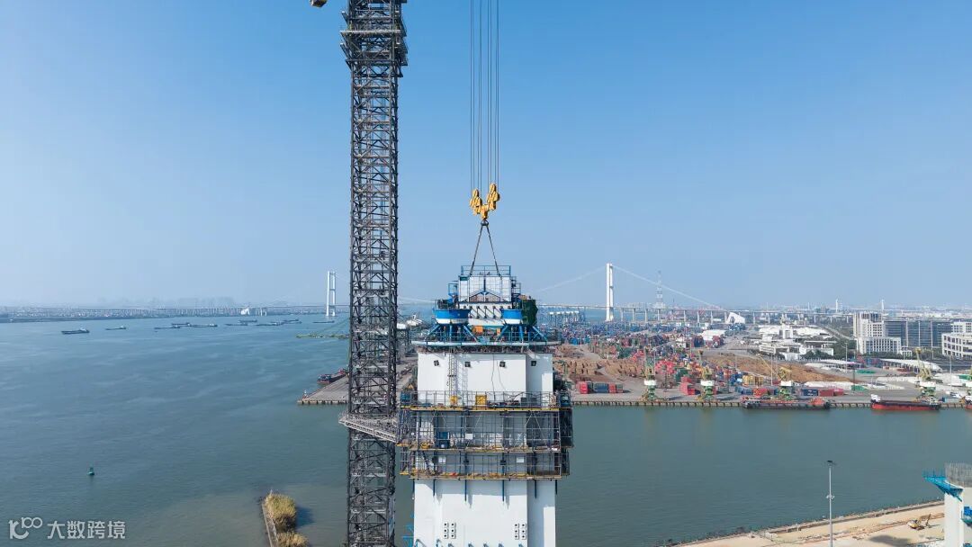 超高桥塔、超大跨径,狮子洋大桥对安装精度控制有着更为严格的要求。342米高的桥塔,倾斜度不超过1/3000,这就要求每个节段安装偏差需控制在1毫米内,相当于只有米粒大小。中交二航局狮子洋通道T8合同段副总工程师田飞介绍,项目部采用全球最大塔式起重机R20000-720吊装,通过北斗定位系统与云端控制交互技术,能实现实时监测、偏差分析、路径规划决策推送,保障索塔线形精度。