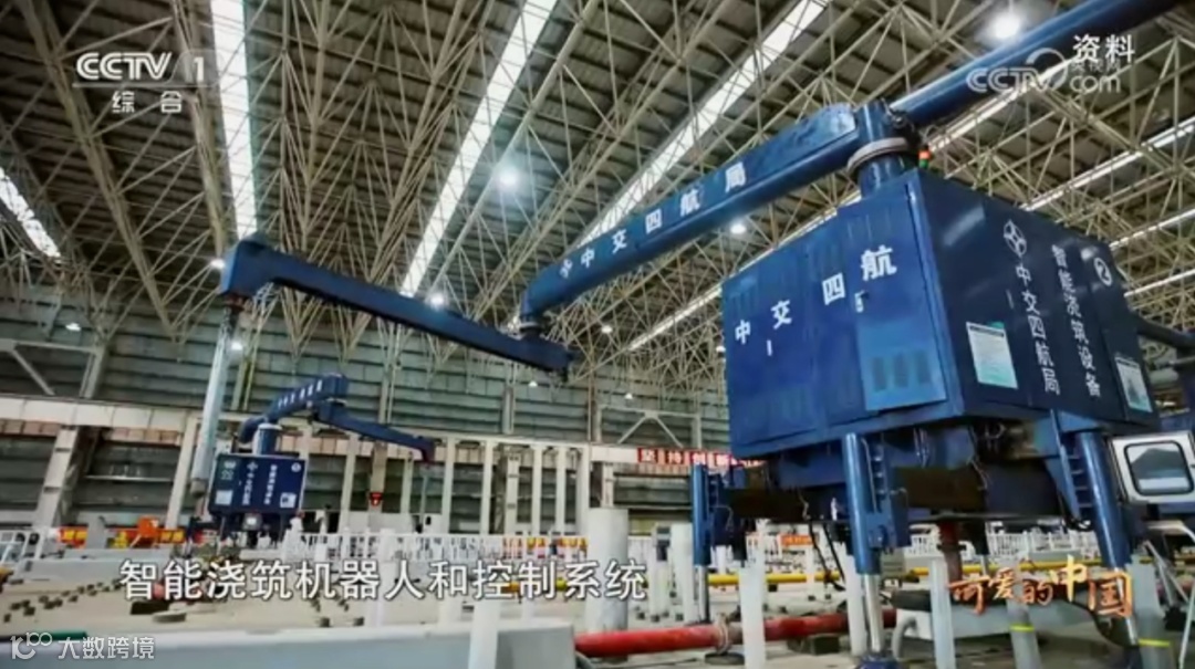为此,建设团队研发新材料——高稳健自流平自密实混凝土,同时在世界上首次研发了混凝土智能浇筑机器人以及控制系统,产业工人操作智能系统,智能机器人能自动行走、自动寻孔、自动控制浇筑速度,一个标准管节通过八台智能浇筑机器人,实现最快29天预制一个管节的高工效。经检测,管节填充密实性合格率达100%,超过了国际同类工程。