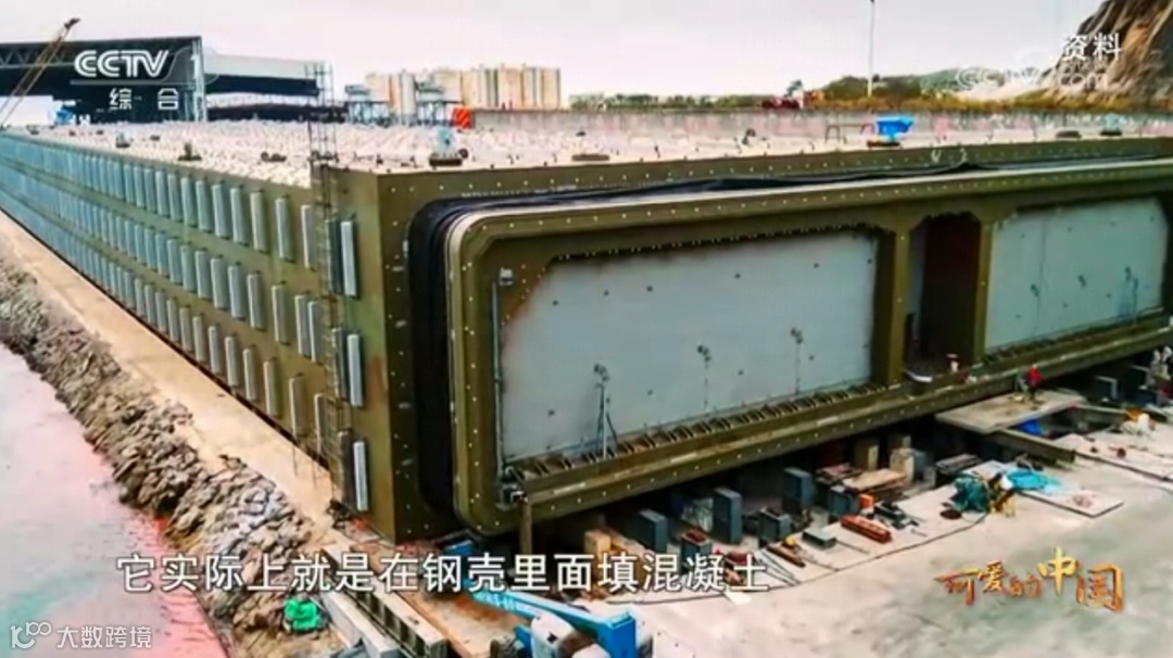 沉管隧道一个标准管节长165米(相当于55层楼)、宽46米(相当于15层楼)、高10.6米,有2255个隔仓,需要填充2.9万立方米的混凝土(足以灌满12个标准游泳池),排水量达到了8万吨(相当于一艘中型航母的体量),大体量混凝土填充密实性是世界性难题。