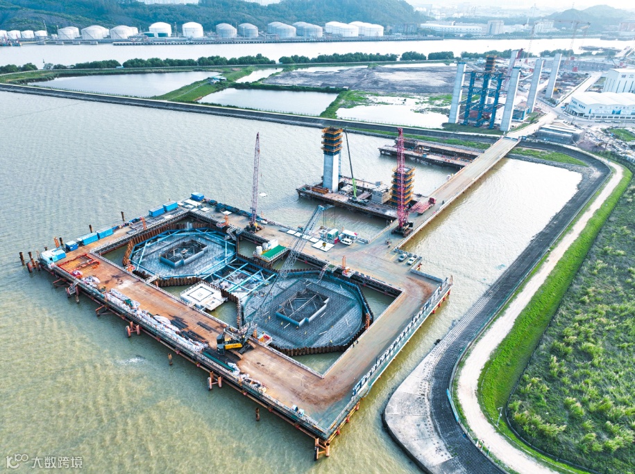 目前,狮子洋通道进展顺利,主桥东索塔已完成第2层承台施工,西索塔已完成第3层承台