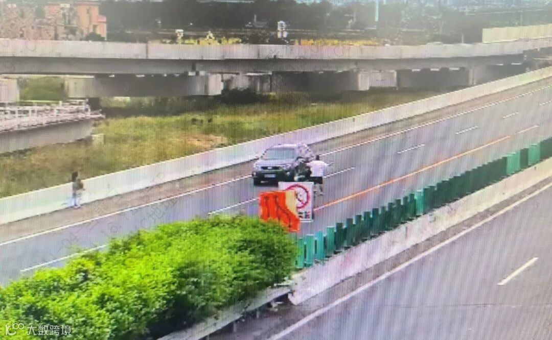 路政员李培华主动递给男子一瓶矿泉水,并耐心与其沟通。在路政员的安抚下,男子情绪逐渐稳定,同意坐上路政车离开高速。女子驾驶的小车由拯救人员拖离现场。