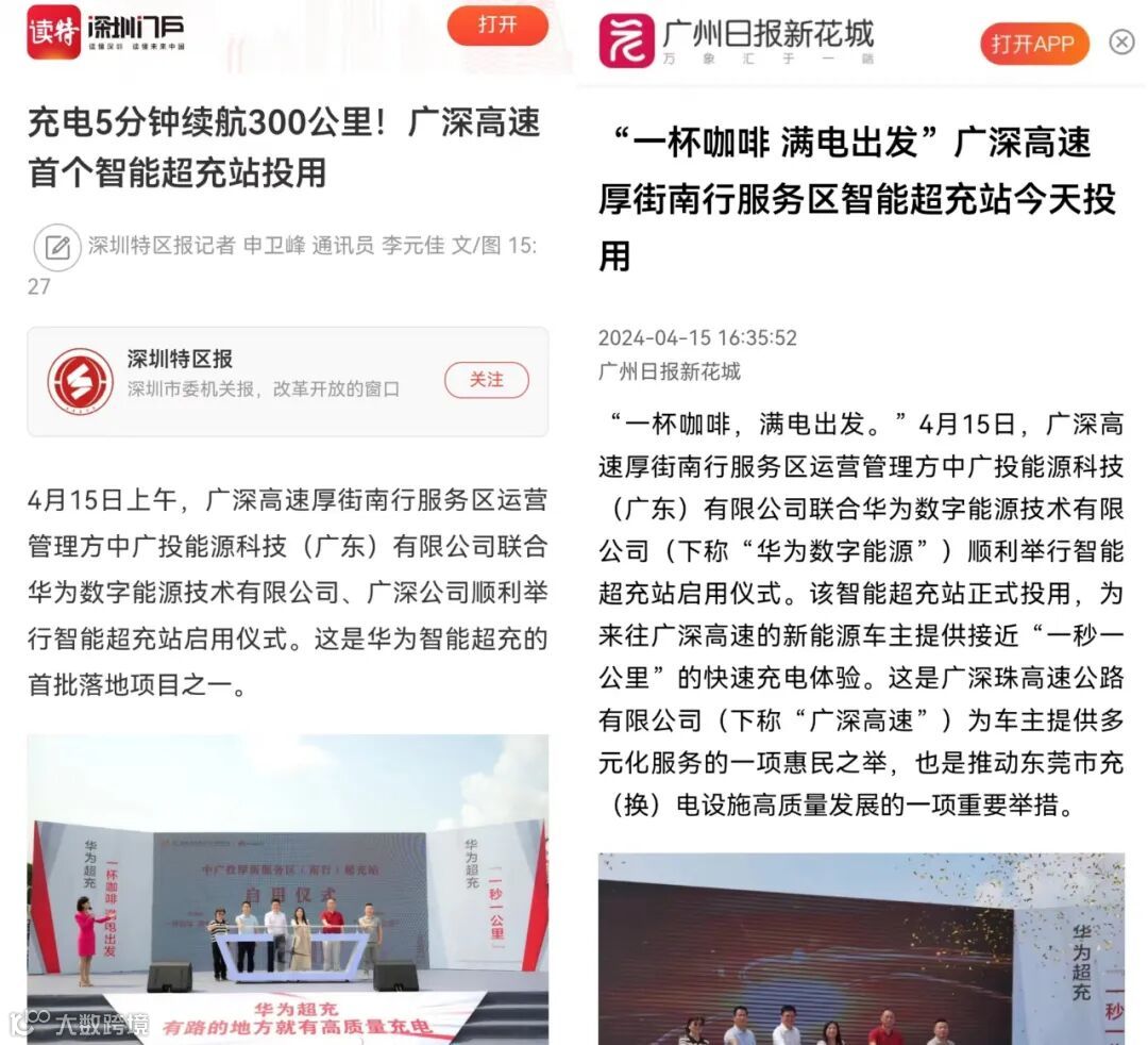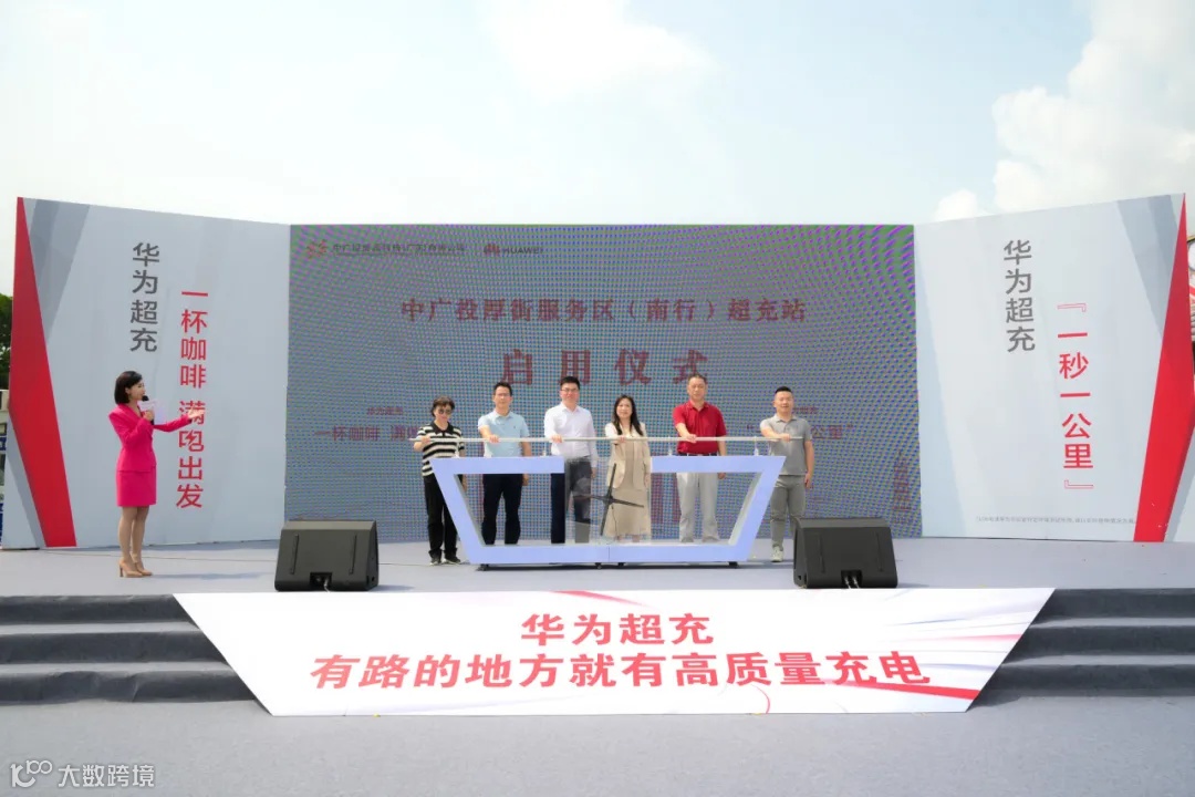 按照东莞市人民政府以及华为数字能源技术有限公司的战略安排,广深高速厚街南行服务区汽车充电桩项目被列为华为智能超充首批落地项目之一。4月15日上午,广深高速厚街南行服务区运营管理方中广投能源科技(广东)有限公司联合华为数字能源技术有限公司、广深公司顺利举行智能超充站启用仪式。