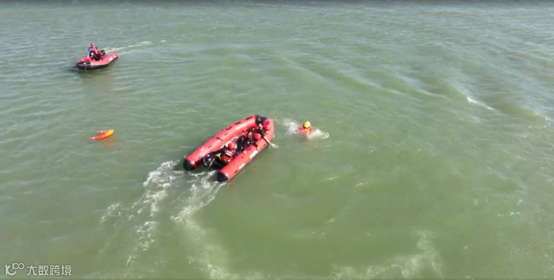 在救援过程中,失控船舶继续碰撞项目水上作业平台,导致一名工作人员坠落海面。项目部紧急启动抢险救援预案进行处置,并向各参建单位和监督管理部门汇报情况。现场应急抢险队伍立即启用救援飞翼(U型智能救生圈),将落水人员救起。