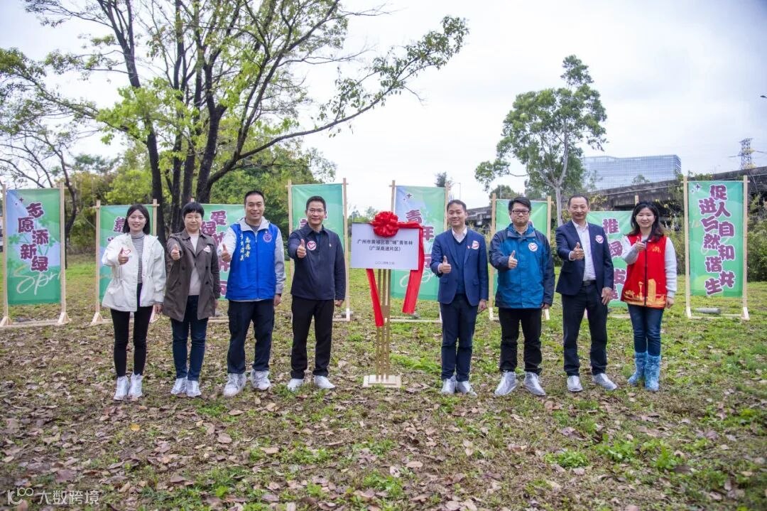 广深公司党委书记赵梓城与广州市志愿者指导中心、共青团广州市黄埔区委员会相关负责人联合为全省第570片青年林——靠“埔”青年林(广深高速片区)揭牌