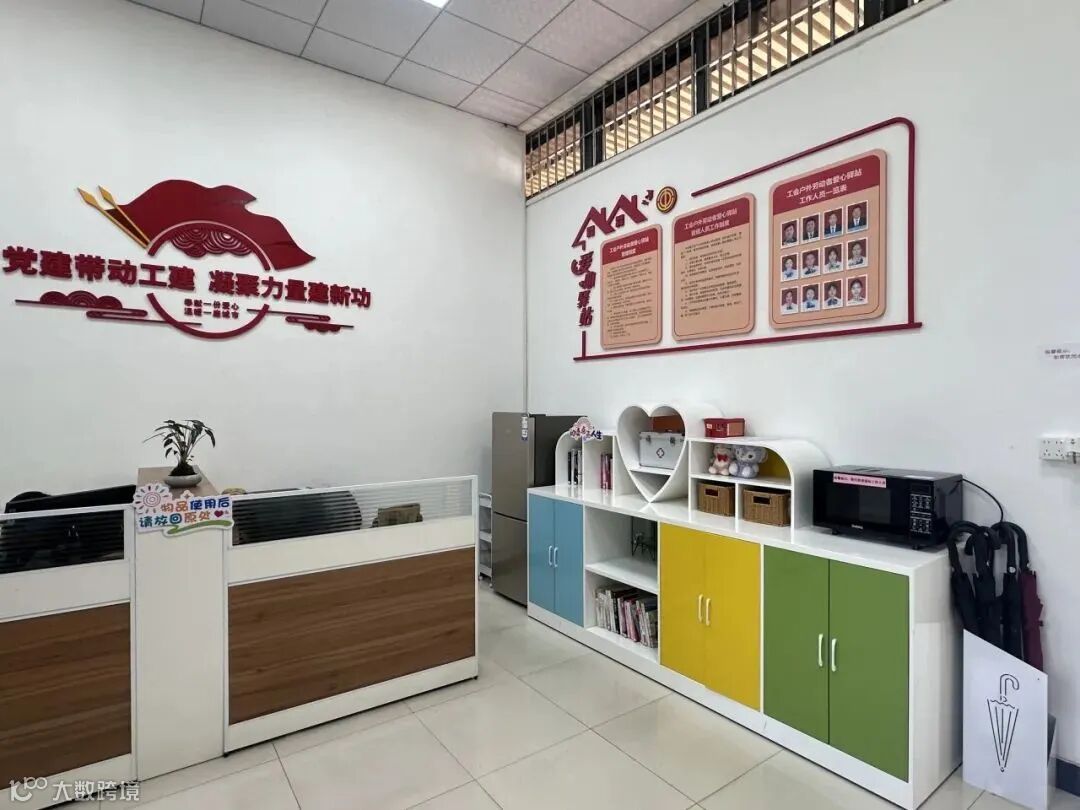中山西工会爱心驿站室内休息区,免费提供热饭、饮水、WiFi、充电、阅读等服务