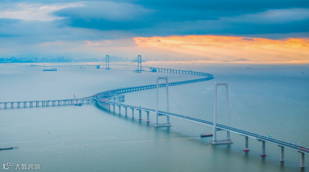 高塔耸入云端、人工岛屹立海上、桥梁若游龙飞动,黑色的沥青路面油润发亮,各种交通
