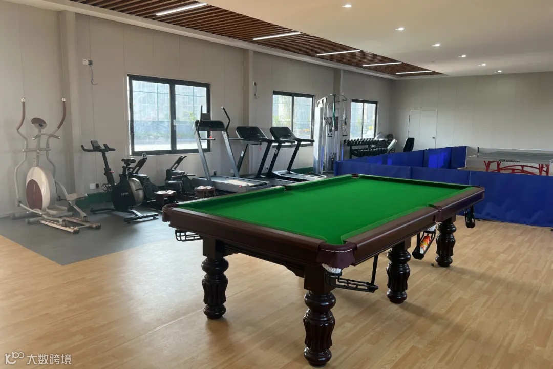项目健身房设置跑步机、划船机、乒乓球台、桌球台等运动设施