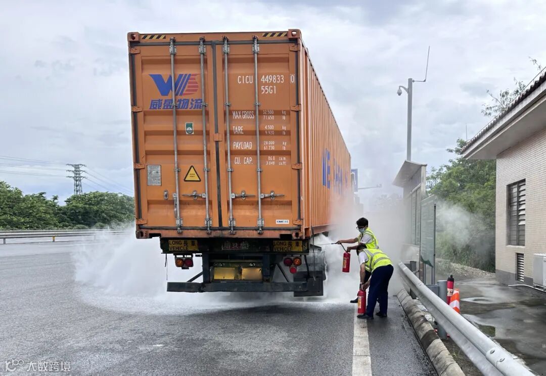 当天11时30分,在南环段高速杏坛站,一辆货车刚完成缴费准备驶离站场,收费员冼灿森突然闻到一股刺鼻的焦味,回头一看,发现货车后轮胎冒出浓烟和零星火花,随时可能发生自燃。