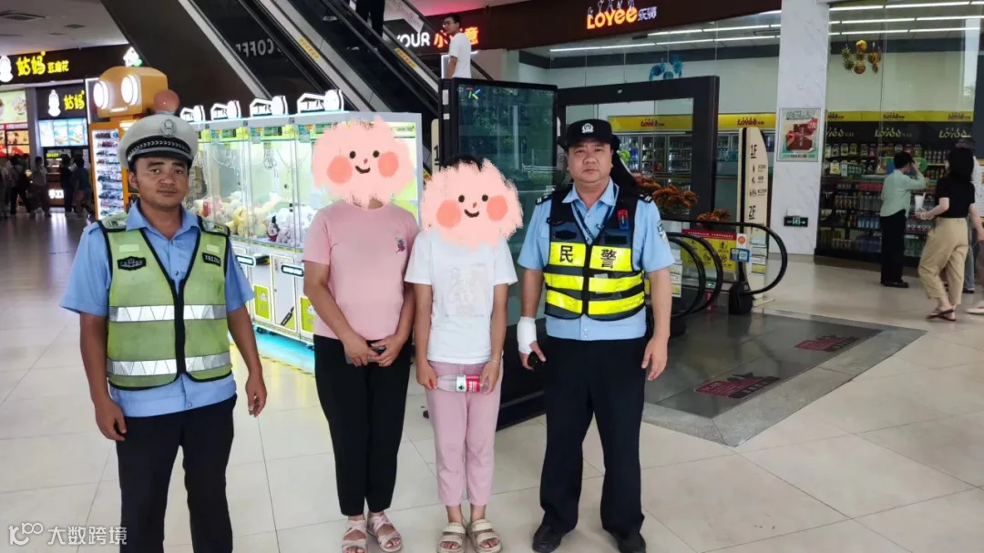 “孩子在这里!找到了!找到了!”经过“漫长”的八分钟,工作人员在服务楼找到了四处走动的小孩。小孩的母亲激动地向工作人员及民警表示感谢。