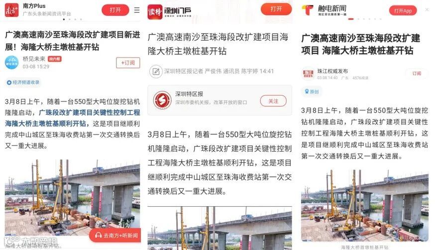 项目团队多次组织召开技术专题会议,优化完善施工方案,科学调配各种资源,实现各级管理与施工现场无缝对接,为首桩顺利开钻打下坚实基础,也为后续桩基高质量大规模施工拉开序幕。预计6月完成小榄水道桥桩基施工,5月开启鸡鸦水道桥主墩桩基开钻,计划2026年底完成海隆大桥新桥建设。