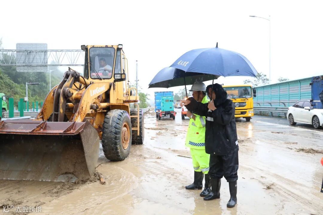 5时30分,由养护、路政、高速交警部门组成的应急抢险党员突击队陆续抵达现场。抢险施工人员发现竹瓦岭隧道口上方持续有水流冲刷至路面,洞口至主线位置整幅被线外山体泥土、树枝、砂石覆盖,急需大型机械设备进场清理。因抢险需要,高速交警对现场实施交通管制,疏导60余辆车安全离开,无司乘人员伤亡。