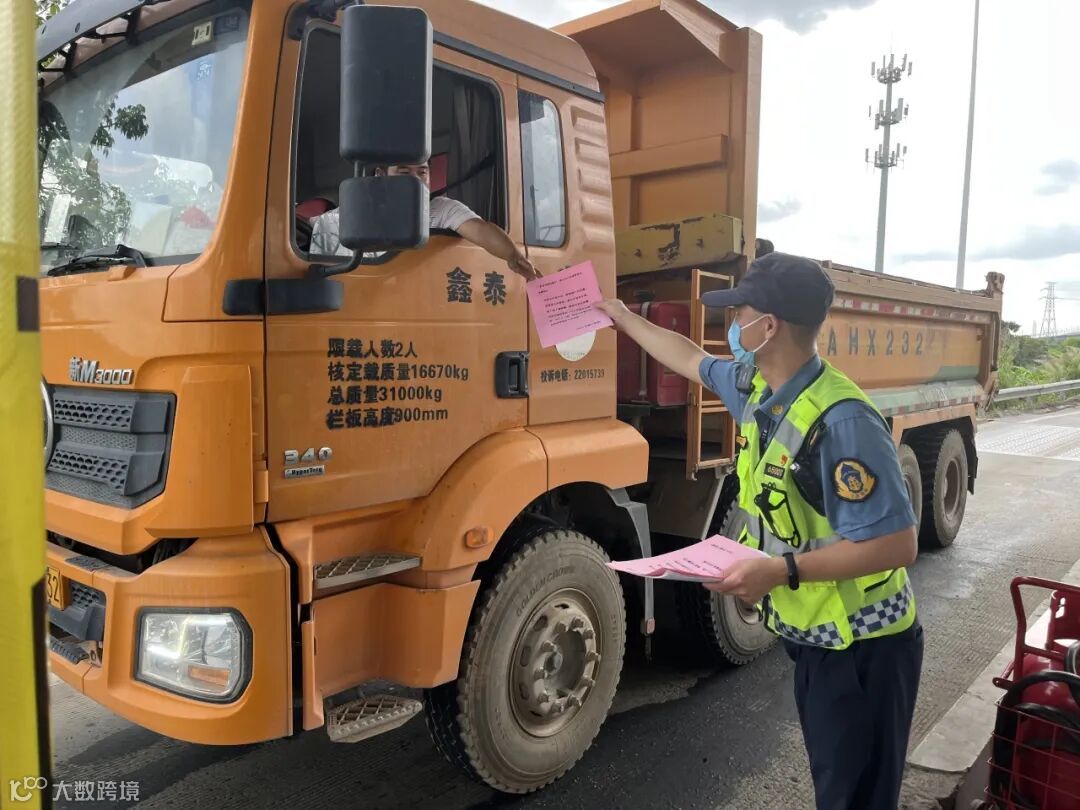 南环段高速路政员在收费站出口派发交通安全宣传单张