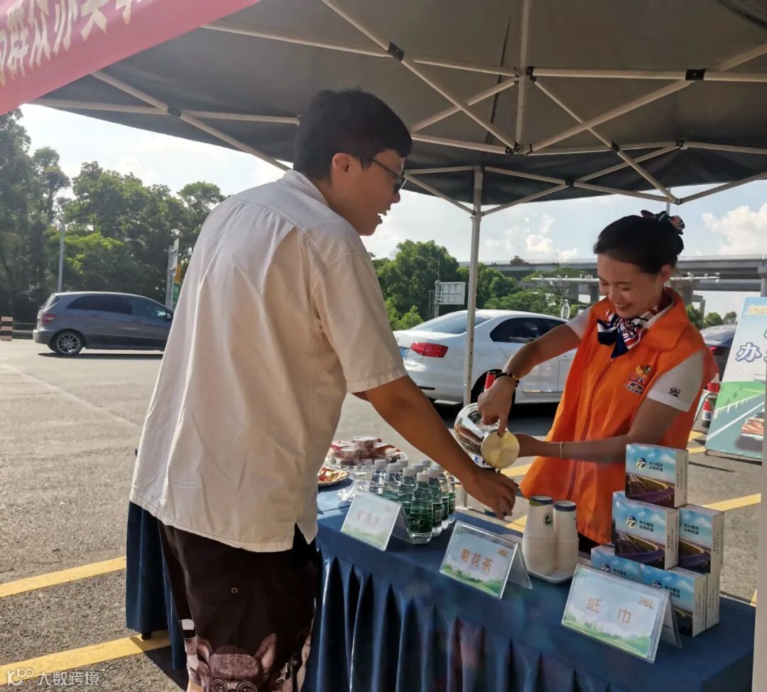 广澳高速广珠段志愿者为过往司乘提供免费茶水、路线指引等服务