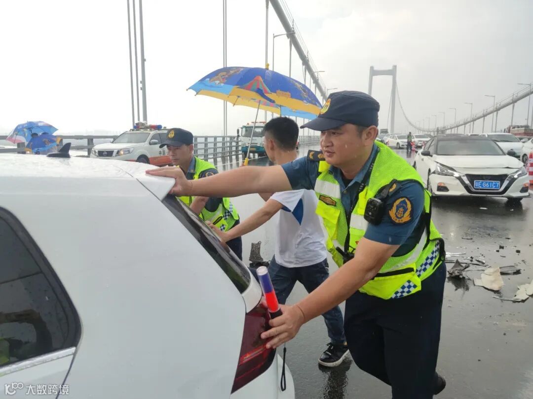 南环段高速路政员化身“推车工”,将事故车推到路肩安全区域等待救援