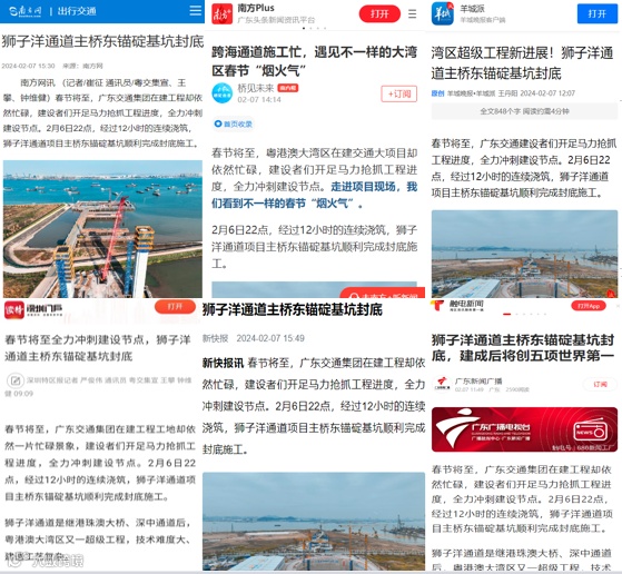 “面对巨大的工程量,我们投入80台设备开展施工,动态优化施工组织和资源配置,确保工程的效率和安全性;采用岛式法开挖、内衬逆筑法等施工工艺,160天完成了东锚碇土方开挖,并高效完成了封底工作。”保利长大狮子洋通道T9合同段项目部技术负责人匡一成介绍道。