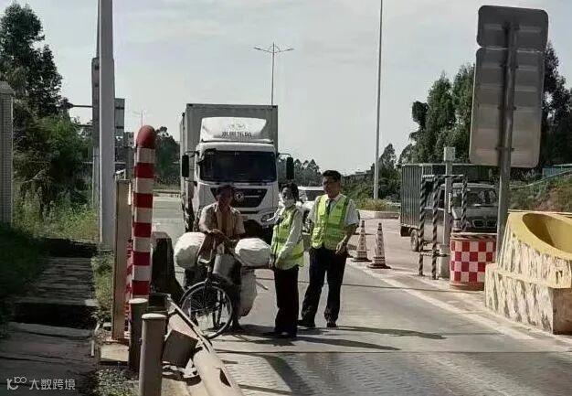11月7日12时30分,一名身穿米黄衬衫、浅色牛仔裤的老人骑着自行车,朝博深高速军垦农场站缓缓驶来,自行车上还载着几个蛇皮袋。当班工作人员练慧琳和邬鹏辉见状立即赶来劝阻,“阿伯,前面是高速公路,行人和自行车是不可以上高速的。”