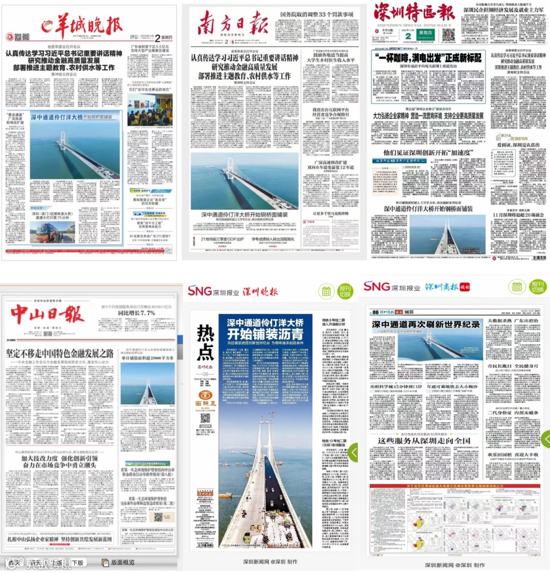 11月1日,国家重大工程深中通道伶仃洋大桥开始钢桥面铺装。当天顺利完成主桥左幅钢桥面首次铺装施工,单日铺装面积达25772平方米。继今年初