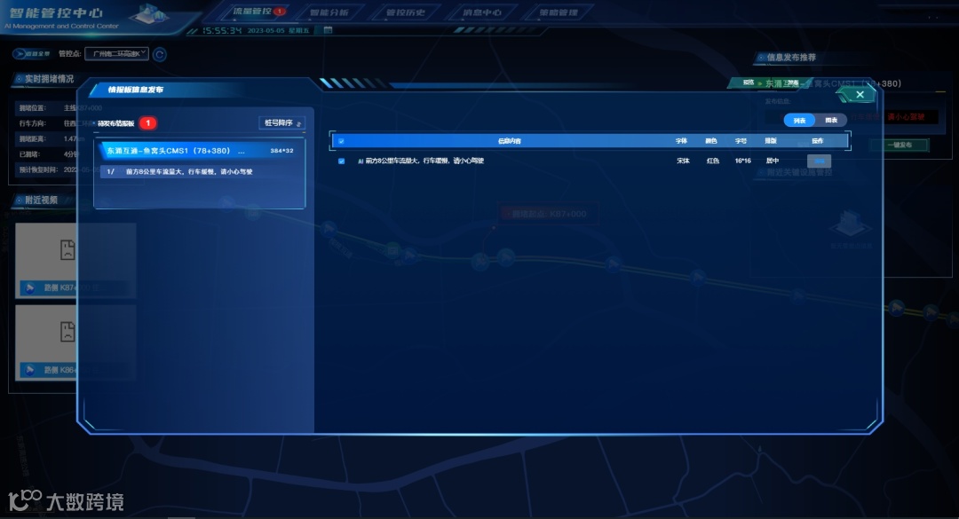 监控中心可以根据智能研判推送的管控措施,直接发布情报板信息,并通知路面的路政、拯救或施工人员结合管控措施做出人员、设备调整,缩短联勤联动生效时间,保障路面安全通畅。