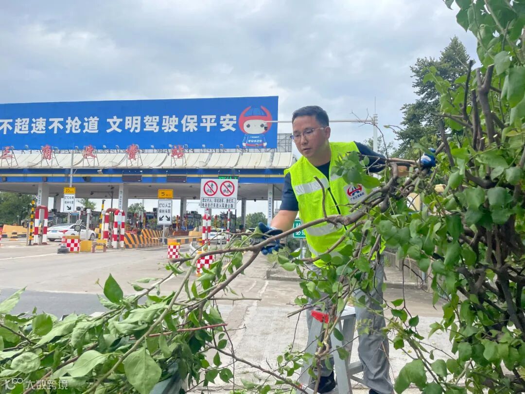 广澳高速广珠段工作人员及时修整收费站场旁边易伏倒树木