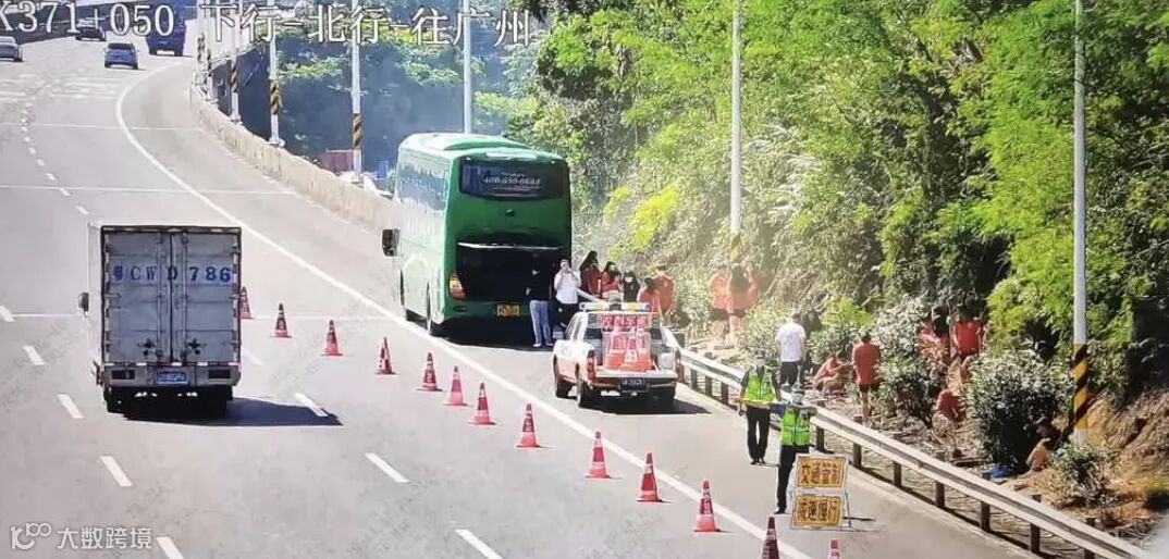 6月2号15时9分,广珠西线高速监控(客服)中心监控员曾德斌巡查发现,一辆大巴车停在北行K371+100(板芙至