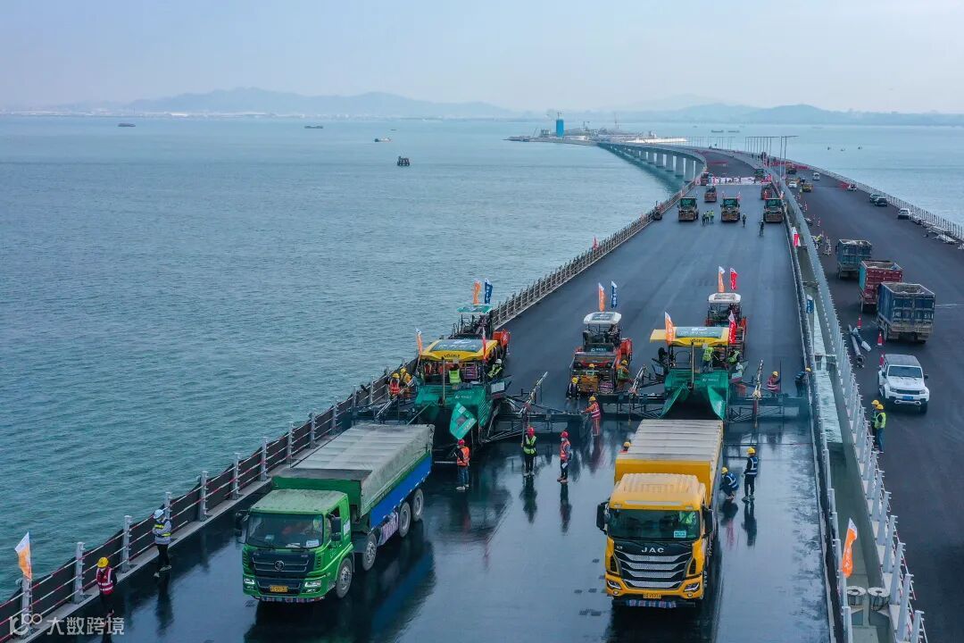 1月11日,国家重大工程、粤港澳大湾区核心交通枢纽深中通道完成全部钢桥面铺装施工。当天下午13时,随着深中通道伶仃洋大桥东泄洪区右幅沥青摊铺结束,深中通道钢桥面铺装圆满完成,同时标志着世界上最大规模的热拌环氧沥青钢桥面铺装工程高质量完工。