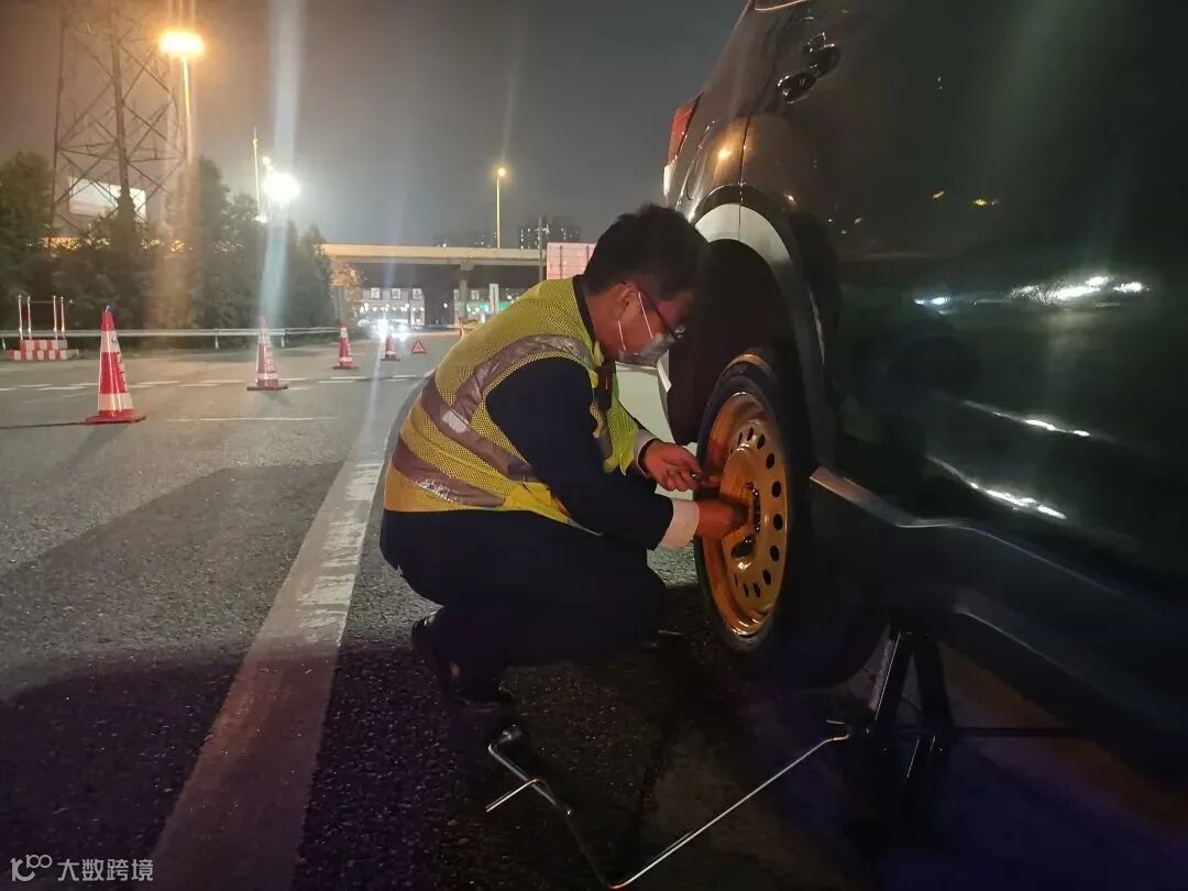 事情要从3月1日说起。当天晚上,江女士驾驶小车途经南丫2号站时,突然听到“砰”的一声,车辆左后轮爆胎。听到响声的工作人员邱子鹏、张程立即上前查看车辆情况,帮助张女士将车辆推至收费站出口安全区域,并着手更换备胎。