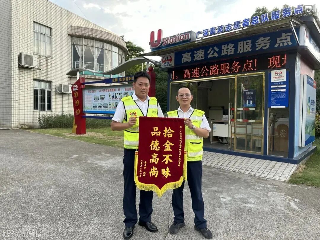 广东省公路建设有限公司“王先生,你有一个快递,请到门口拿一下。”7月27日下午,广深高速东莞站管理人员王强接到一通取件电话。近期没有网购的他一头雾水,打开快递一看,里面竟装着一面写有“拾金不昧 品德高尚”的锦旗。