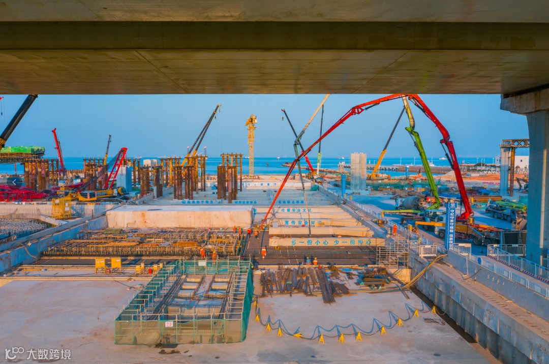 深中通道东人工岛正浇筑主线隧道最后一段顶板混凝土