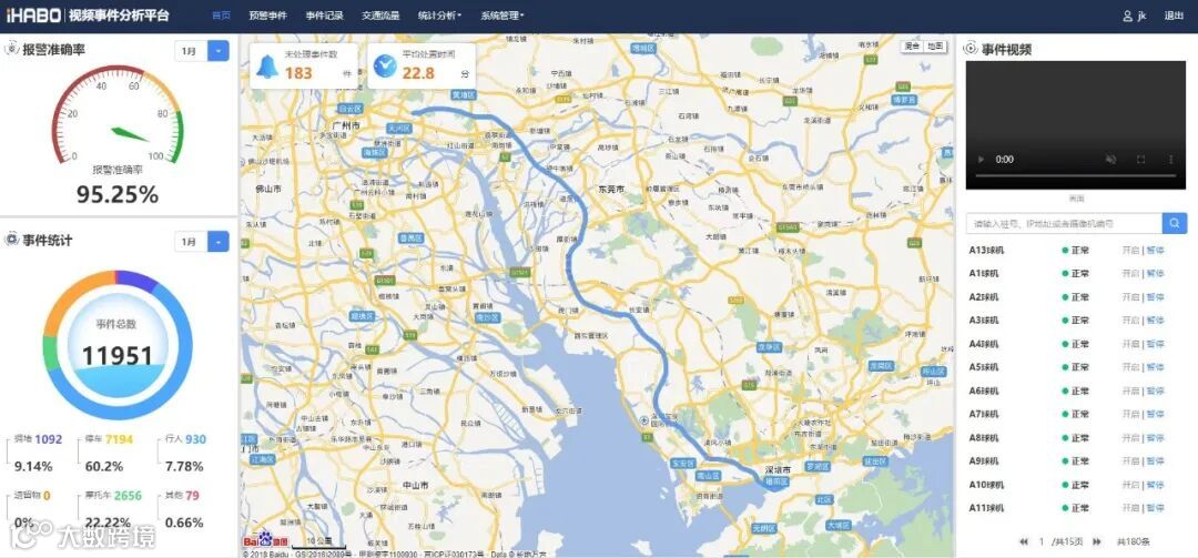 春运期间,依托“一杆双枪”,广深高速监控中心上线“千路千寻-智能交通监控系统”,将235路主线及40路入口广场高清视频的实时画面接入智能交通监控系统事件检测平台。