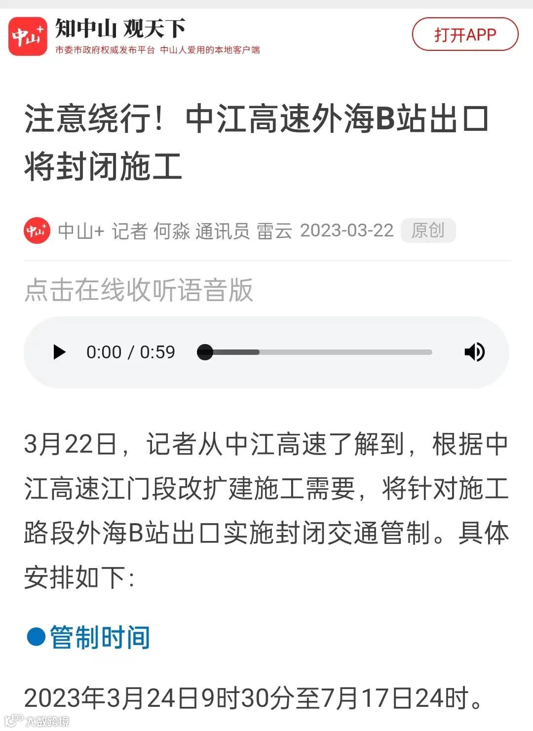 注意绕行!中江高速外海 B 站出口今起封闭施工