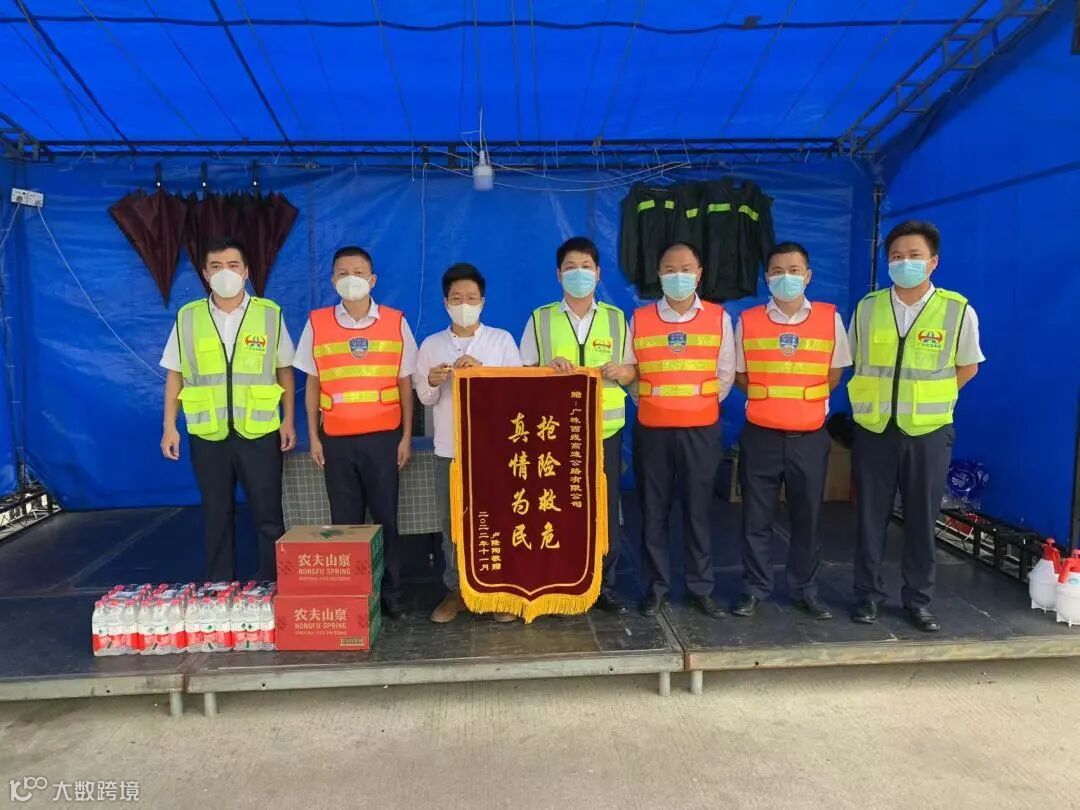 区,向服务区入粤货车服务点的工作人员赠送了一面锦旗,感谢他们在危急之时伸出援手。