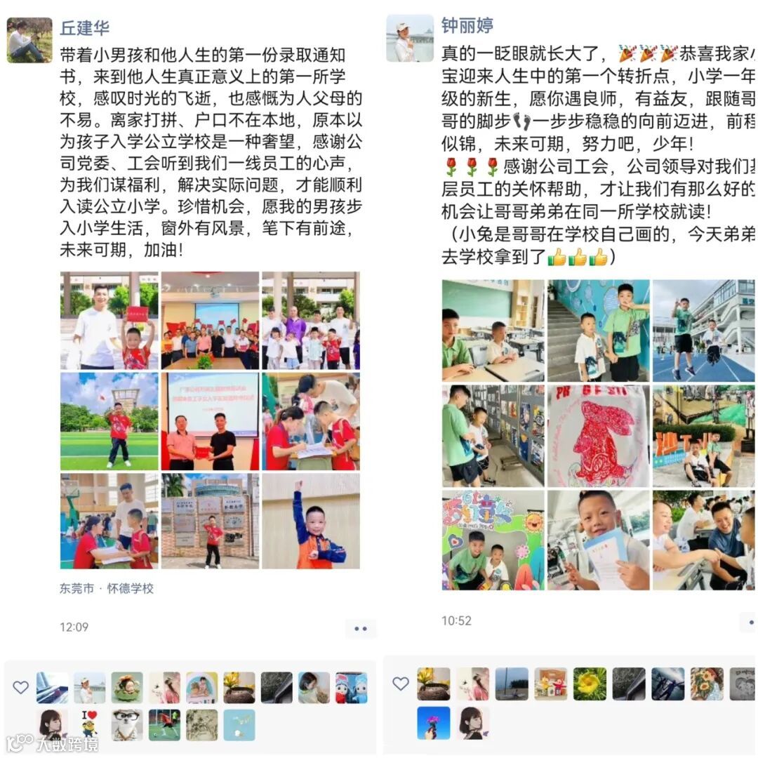 “终于带着小孩到学校报到了,心中这一块大石头总算落地。感谢公司帮忙解决小孩入学的问题,为我们免去了后顾之忧。”7月8日,在