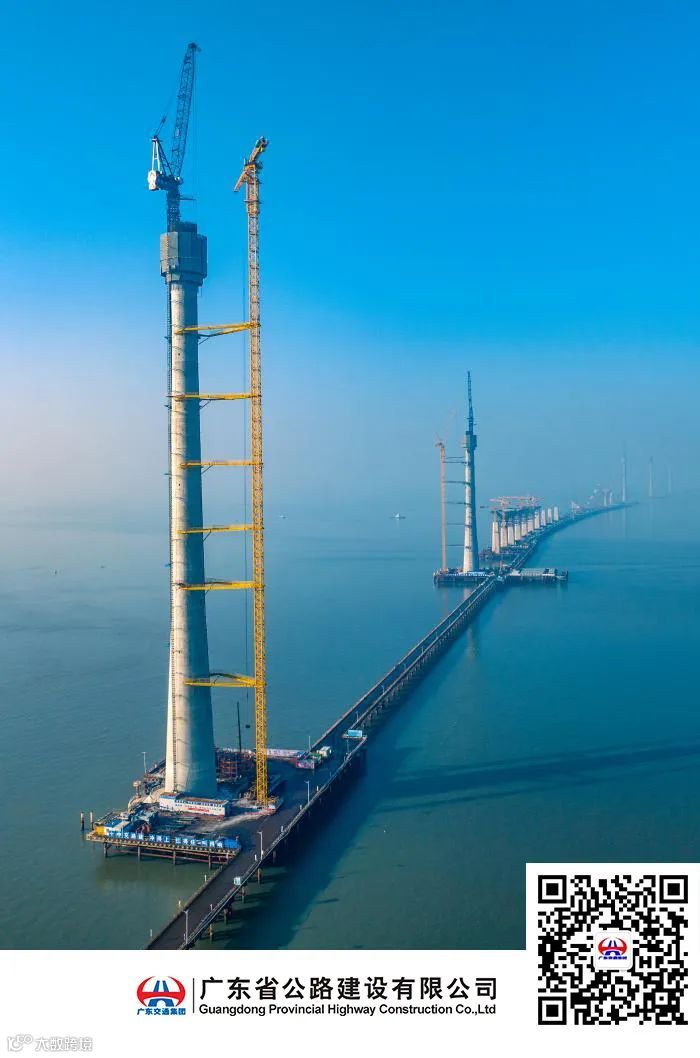 2023年3月,历经17个月的紧张施工,黄茅海跨海通道五座混凝土主塔行将封顶。项目全长31公里,横跨