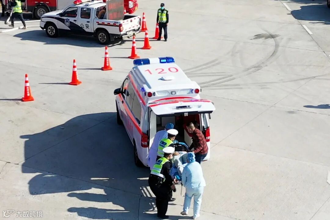 经检查,“事故”货车司机头部受伤,医护人员对司机进行紧急处理,并随即将其转移至医院救治。
